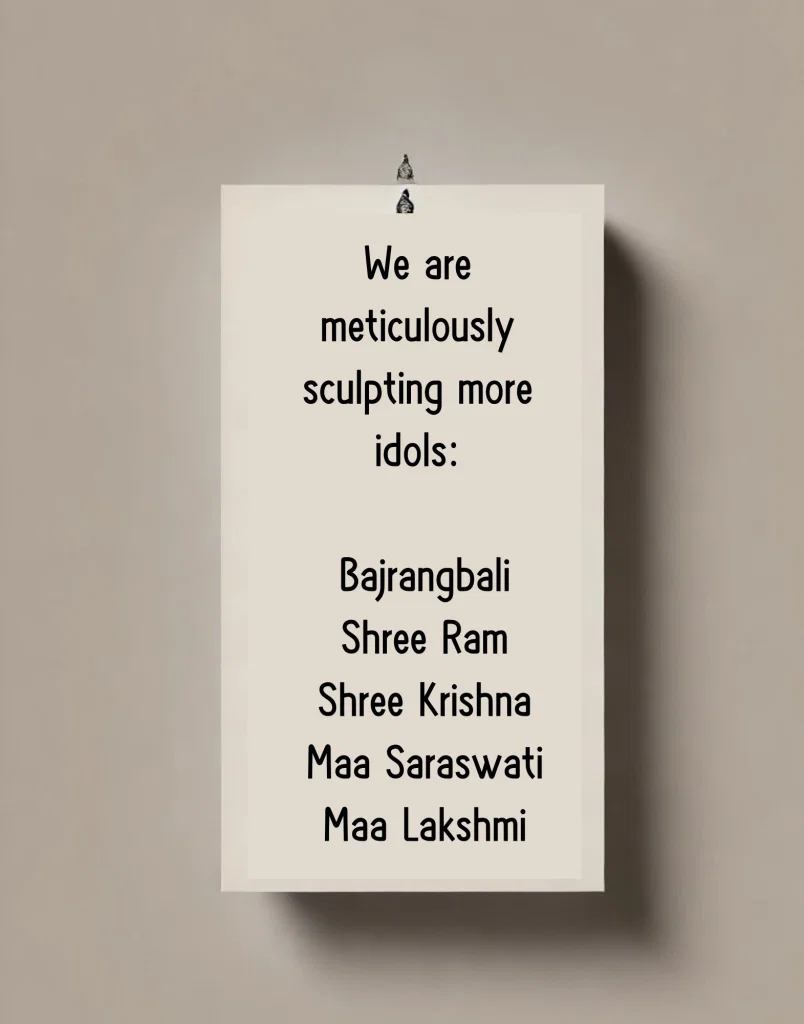 At IndicIdols, we are more than just creators of fine art idols—we are storytellers of devotion and divinity. While our first masterpiece takes center stage, our journey continues with five extraordinary creations in progress. Each idol is a reflection of India’s rich spiritual heritage, carefully crafted to bring divine presence into your home.